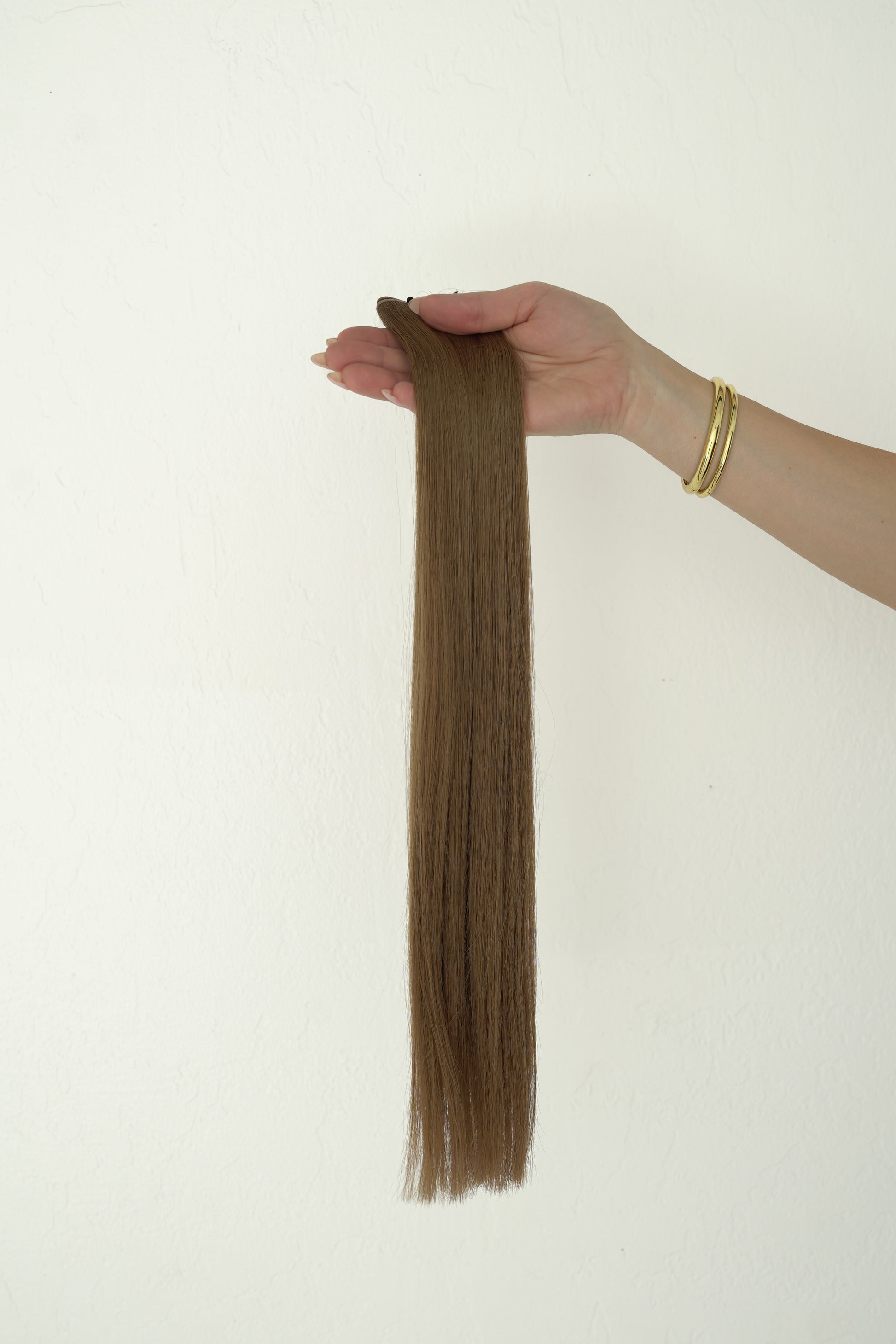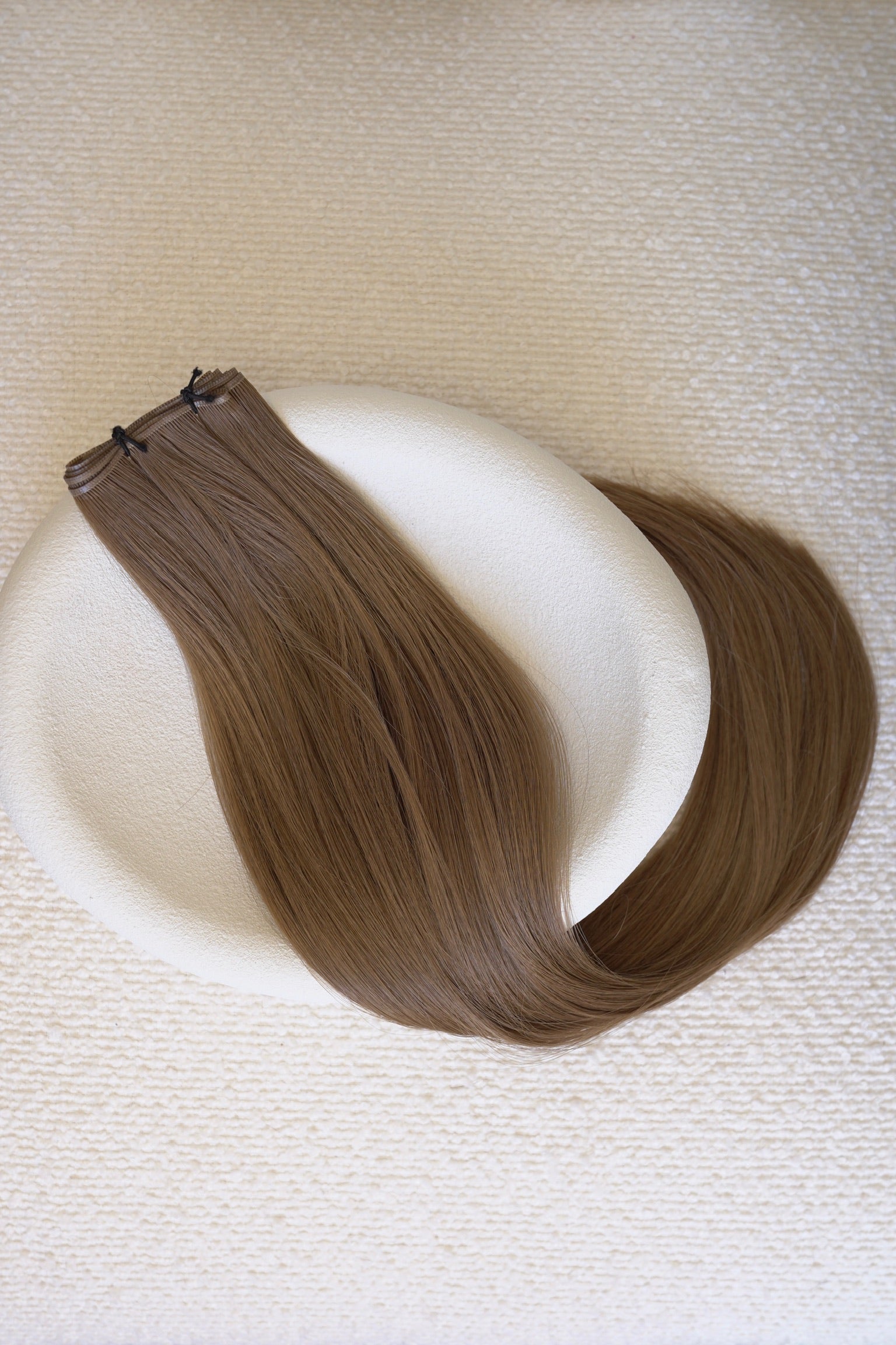 Mica Hair Co. is bringing you the new Luxe weft! It is 100% European, virgin cuticle, double drawn human hair for ultra thick ends. This hair has a thinner, lighter seam, like hand tied but without the return hair. This weft makes for a more customizable, comfortable, invisible fit on all head shapes. The seam can be cut anywhere without shedding and lays flatter than traditional wefts.