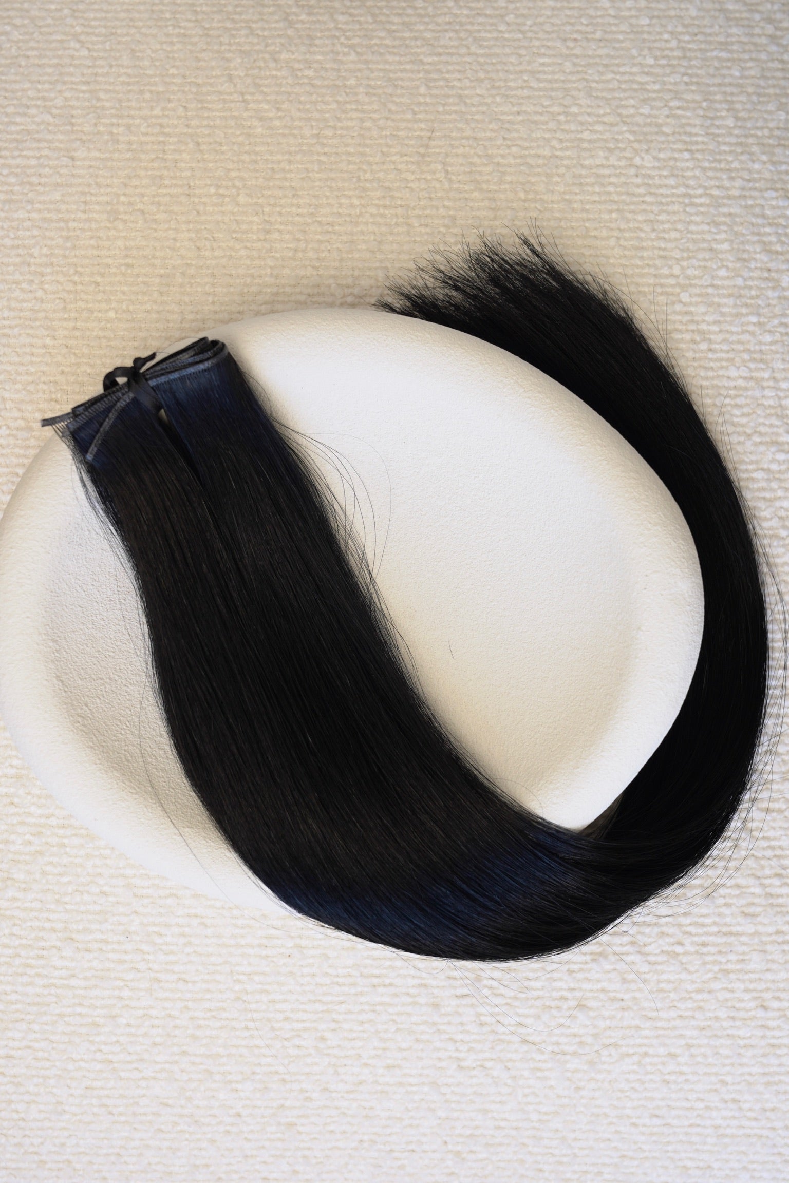 Mica Hair Co. is bringing you the new Luxe weft! It is 100% European, virgin cuticle, double drawn human hair for ultra thick ends. This hair has a thinner, lighter seam, like hand tied but without the return hair. This weft makes for a more customizable, comfortable, invisible fit on all head shapes. The seam can be cut anywhere without shedding and lays flatter than traditional wefts.